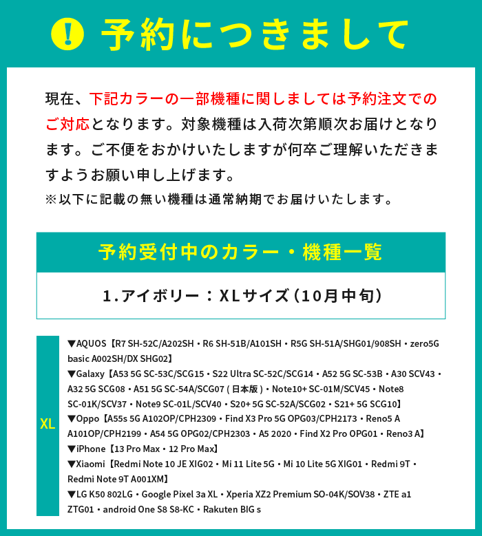 対応機種一覧 ・Apple(アップル)iPhone SE3(第3世代), iPhone13 mini, iPhone13, iPhone13 Pro, iPhone13 Pro Max, iPhone12 mini, iPhone12, iPhone12 Pro, iPhone12 Pro Max, iPhone SE2(第2世代), iPhone11, iPhone11 Pro, iPhone11 Pro Max, iPhone XS, iPhone XS Max, iPhone XR, iPhone X,iPhone8 Plus,iPhone8,iPhone7 Plus,iPhone7,iPhone6s Plus,iPhone6s,iPhone6 Plus(5.5inch),iPhone6(4.7inch),iPhone5S/5,iPhone SE,iPhone5C,iPod touch 7,iPod touch 6,iPod touch 5, ・docomo(ドコモ)AQUOS R7 SH-52C, Galaxy A53 5G SC-53C, AQUOS wish2 SH-51C, Xperia Ace III SO-53C, Xperia 10 IV SO-52C, Xperia 1 IV SO-51C, あんしんスマホ KY-51B, Galaxy S22 Ultra SC-52C, Galaxy S22 SC-51C, らくらくスマートフォン F-52B, arrows We F-51B, Galaxy A22 5G SC-56B, Xperia 5 III SO-53B, AQUOS sense6 SH-54B, arrows Be4 Plus F-41B, AQUOS R6 SH-51B, Xperia Ace2 SO-41B, Galaxy A52 5G SC-53B, Xperia 10 III SO-52B, Xperia 1 III SO-51B, Galaxy S21 Ultra 5G SC-52B, Galaxy S21 5G SC-51B, AQUOS sense5G SH-53A, arrows NX9 F-52A, Galaxy A51 5G SC-54A (日本版), AQUOS sense4 SH-41A, Galaxy A21 SC-42A, LG style3 L-41A, Galaxy Note20 Ultra 5G SC-53A, Xperia 5 II SO-52A, らくらくスマートフォン F-42A, arrows 5G F-51A, arrows Be4 F-41A, Galaxy A41 SC-41A, Galaxy S20+ 5G SC-52A, Xperia 10 II SO-41A, Xperia 1 II SO-51A, HUAWEI P30 Pro HW-02L, Galaxy S20 5G SC-51A, AQUOS R5G SH-51A, AQUOS zero2 SH-01M, Galaxy A20 SC-02M, Galaxy Note10+ SC-01M, Xperia 5 SO-01M, AQUOS sense3 SH-02M, LG style2 L-01L, Xperia 1 SO-03L, Google Pixel 3a, Google Pixel 3a XL, Xperia Ace SO-02L, arrows Be3 F-02L, AQUOS R3 SH-04L, Galaxy S10 SC-03L, Galaxy S10+ SC-04L, Galaxy S10+ Olympic Games Edition SC-05L, らくらくスマートフォン me F-01L, AQUOS sense2 SH-01L, Galaxy Feel2 SC-02L, Google Pixel 3, Google Pixel 3 XL, Xperia XZ3 SO-01L, Galaxy Note9 SC-01L, Xperia XZ2 Premium SO-04K, LG style L-03K, HUAWEI P20 Pro HW-01K, AQUOS R2 SH-03K, arrows Be F-04K, Xperia XZ2 SO-03K, Xperia XZ2 Compact SO-05K, Galaxy S9 SC-02K, Galaxy S9+ SC-03K, V30+ L-01K, Xperia XZ1 SO-01K,Xperia XZ1 Compact SO-02K,AQUOS sense SH-01K,arrows NX F-01K,MONO MO-01K,arrows Be F-05J,AQUOS R SH-03J,Galaxy Feel SC-04J,Galaxy S8+ SC-03J,Galaxy S8 SC-02J,arrows NX F-01J,MONO MO-01J,V20 PRO L-01J,らくらくスマートフォン4 F-04J,Xperia X Compact SO-02J,AQUOS EVER SH-02J,Disney Mobile on docomo DM-01J,Xperia XZ SO-01J,Galaxy S7 edge SC-02H,Xperia X Performance SO-04H,Disney Mobile on docomo DM-01H,AQUOS Compact SH-02H,arrows SV F-03H,arrows NX F-02H,arrows Fit F-01H,AQUOS ZETA SH-04H,Xperia Z5 Premium SO-03H,Xperia Z5 Compact SO-02H,Xperia Z5 SO-01H,AQUOS EVER SH-04G,Xperia A4 SO-04G,Disney Mobile on docomo SH-02G,AQUOS ZETA SH-01G,Xperia Z3 Compact SO-02G,Xperia Z3 SO-01G, ・au(エーユー)Xperia Ace III SOG08, Xperia 10 IV SOG07, Xperia 1 IV SOG06, Galaxy S22 Ultra SCG14, Galaxy S22 SCG13, AQUOS sense6s SHG07, AQUOS wish SHG06, arrows We FCG01, Xperia 5 III SOG05, Xiaomi Redmi Note10 JE XIG02, AQUOS sense6 SHG05, AQUOS zero6 SHG04, OPPO Find X3 Pro 5G OPG03, OPPO A54 5G OPG02, Xperia 10 III SOG04, Xperia 1 III SOG03, Galaxy A32 5G SCG08, Galaxy S21+ 5G SCG10, Galaxy S21 5G SCG09, Galaxy A51 5G SCG07 (日本版), Galaxy A21 SCV49, Google Pixel 5, Galaxy Note20 Ultra 5G SCG06, AQUOS sense5G SHG03, AQUOS zero5G basic DX SHG02, Xperia 5 II SOG02, GRATINA KYV48, OPPO Find X2 Pro OPG01, Xiaomi Mi 10 Lite 5G XIG01, ZTE a1 ZTG01, Galaxy S20 Ultra SCG03, Galaxy A41 SCV48, Galaxy S20+ 5G SCG02, Xperia 10 II SOV43, Xperia 1 II SOG01, HUAWEI P30 lite Premium HWV33, Galaxy S20 5G SCG01, AQUOS R5G SHG01, AQUOS zero2 SHV47, Galaxy A20 SCV46, Galaxy Note10+ SCV45, Xperia 8 SOV42, Xperia 5 SOV41, Xperia 1 SOV40, AQUOS sense3 Plus Sound SHV46, AQUOS sense3 SHV45, Xperia 1 SOV40, Galaxy A30 SCV43, AQUOS R3 SHV44, Galaxy S10 SCV41, Galaxy S10+ SCV42, URBANO V04 KYV45, LG it LGV36, AQUOS sense2 SHV43, Xperia XZ3 SOV39, Galaxy Note9 SCV40, Xperia XZ2 Premium SOV38, AQUOS R2 SHV42, Xperia XZ2 SOV37, Galaxy S9 SCV38, Galaxy S9+ SCV39,HUAWEI P20 lite HWV32,Qua phone QZ KYV44,HUAWEI nova 2 HWV31,isai V30+ LGV35,Xperia XZ1 SOV36,AQUOS R compact SHV41,AQUOS sense SHV40,Qua phone QX KYV42,HTC U11 HTV33,AQUOS R SHV39,Galaxy S8 SCV36,Galaxy S8+ SCV35,AQUOS SERIE mini SHV38,miraie f KYV39,isai beat LGV34,AQUOS U SHV37,Xperia XZ SOV34,AQUOS U SHV35,Qua phone PX LGV33,Galaxy S7 edge SCV33,Xperia X Performance SOV33,Galaxy A8 SCV32,AQUOS SERIE SHV34,AQUOS SERIE mini SHV33,Xperia Z5 SOV32,Xperia Z3 SOL26, ・SoftBank(ソフトバンク)AQUOS R7 A202SH, シンプルスマホ6 A201SH, Xperia 10 IV SOG07, Xperia 1 IV A201SO, OPPO A55s 5G A102OP, AQUOS wish A103SH, arrows We A101FC, Xperia 5 III A103SO, AQUOS zero6 A102SH, Google Pixel 5a(5G), AQUOS R6 A101SH, Xiaomi Redmi Note 9T A001XM, Xperia 1 III A101SO, AQUOS sense5G A004SH, DIGNO BX 901KC, Google Pixel 4a (5G) , Google Pixel 5, シンプルスマホ5 A001SH, AQUOS zero5G basic A002SH, Xperia 5 II A002SO, Google Pixel 4a, OPPO Reno3 5G A001OP, Xperia 10 II A001SO, AQUOS R5G 908SH, AQUOS zero2, Xperia 5 901SO, AQUOS sense3 Basic, AQUOS sense3 plus, Google Pixel4, Google Pixel4 XL, arrows U 801FJ, LG K50 802LG, Xperia 1 802SO, Google Pixel 3a, Google Pixel 3a XL, AQUOS R3 808SH, Android One S5, AQUOS R2 compact 803SH, AQUOS zero 801SH, HUAWEI Mate 20 Pro, Google Pixel 3, Google Pixel 3 XL, Xperia XZ3 801SO, シンプルスマホ4 704SH, AQUOS R2 706SH, Xperia XZ2 702SO, DIGNO J 704KC, Android One S3,Xperia XZ1 701SO,AQUOS R compact 701SH,HTC11 U 601HT, AQUOS R 604SH,シンプルスマホ3 509SH,Xperia XZ 601SO,AQUOS Xx3 (506SH),AQUOS Xx2 mini (503SH),Xperia Z5,Xperia Z3, ・その他キャリア(Y!mobileなど)Android One S9, Xperia 10 IV XQ-CC44, AQUOS wish2 A204SH, Xperia Ace III A203SO, Xperia 5 III 5G XQ-BQ42, AQUOS sense6s, かんたんスマホ2+ A201KC, OPPO A55s 5G CPH2309, AQUOS wish SH-M20 / A104SH, AQUOS sense6 SH-M19, Xperia 1 III XQ-BC42, AQUOS R6 SH-M22, Xiaomi Mi 11 Lite 5G, AQUOS zero6 SH-RM18, Libero 5G A003ZT, Xperia 