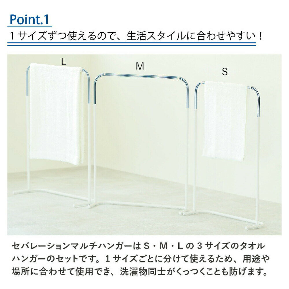 商品概要 商品名セパレーションマルチハンガー 仕様・特徴・S/M/Lの3サイズのタオルハンガーがセットになっています。