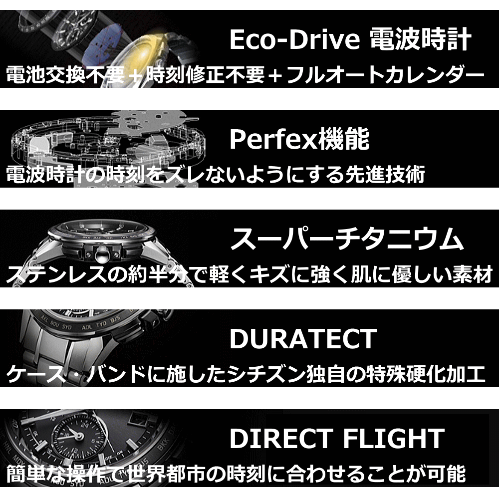 クリックで商品ページです↑↑■主な特徴CITIZEN EXCEED/エクシード エコ・ドライブ電波時計 商品詳細ムーブメントエコ・ドライブ電波時計(光発電3年) 精度:±15秒/月(非受信時)サイズ重量:34g 厚み:7,7mmケースケースサイズ【⇔】:26,6mm ケース:スーパーチタニウム 表面処理:デュラテクトプラチナ・デュラテクトピンク(ライトシルバー色・ピンクゴールド色) 5気圧防水ガラスサファイアガラス(99%クラリティ・コーティング)バンド三ツ折れプッシュタイプ中留特徴パーフェックス搭載 日中米欧電波受信機能受信局自動選択機能 定時受信機能 強制受信機能 衝撃検知機能 針自動補正機能 充電残量表示機能 充電警告機能 過充電防止機能 ワールドタイム機能(24都市) サマータイム機能■三ツ折れプッシュタイプバンドの参考画像■腕時計のサイズ調整も無料でお受けいたします♪